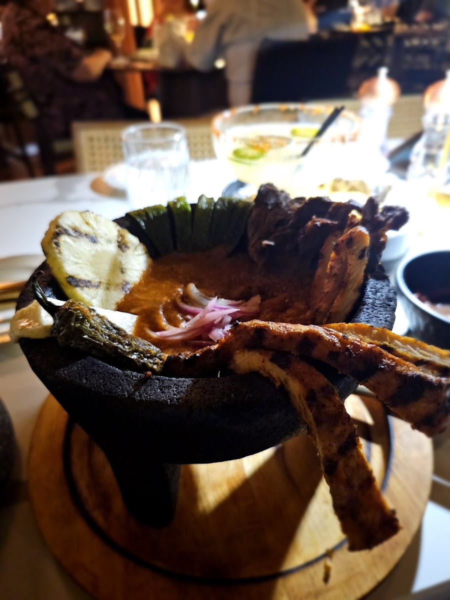 The reviews are correct - this place is outstanding in so many ways. It's a first class set of dining areas and bars with delicious food and beverages. Even the bathrooms stand out. The DD house margarita is excellent - a reasonable glass for $9, so I enjoyed two of them. My wife enjoyed the quesobirria tacos, and I went big with the Molcajete bowl. It has strips of chicken, steak, pineapple, and poblano peppers, draped into a steaming bowl of sauce loaded with ground chorizo. I highly recommend it! Service was excellent and I'm sure most customers leave happy.